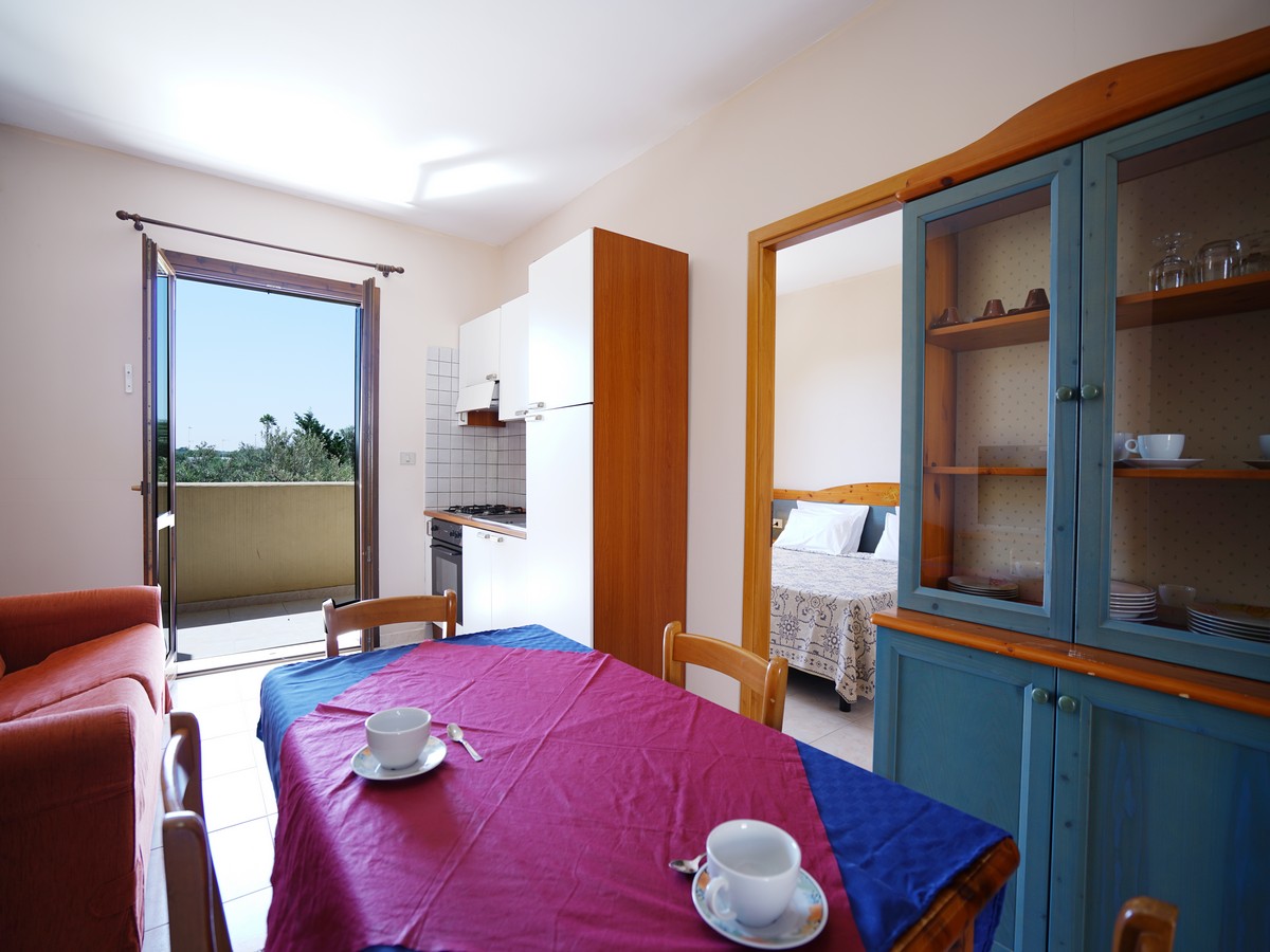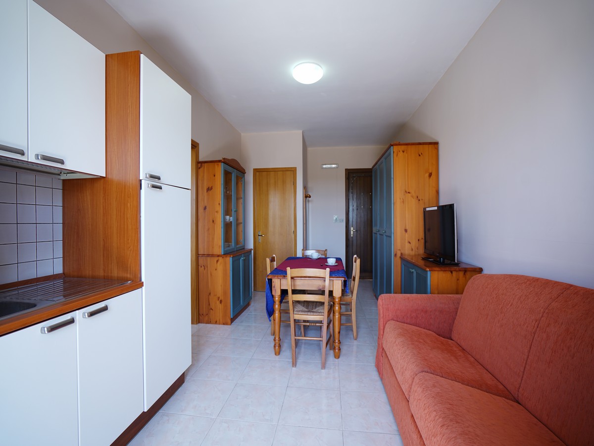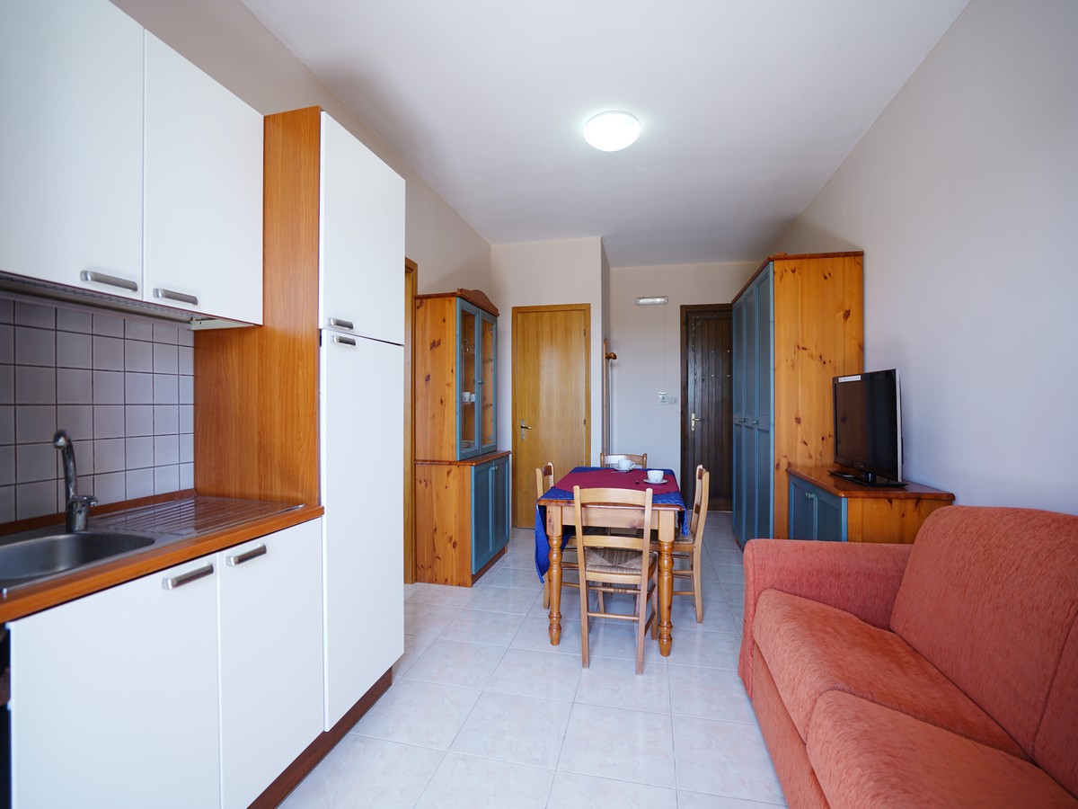 Trilocale piano terra con giardino (da 2 a 4 posti letto): angolo cottura, aria condizionata, 70 mq composto da soggiorno, camera con due lettini, camera matrimoniale e servizi privati, televisione, minibar
