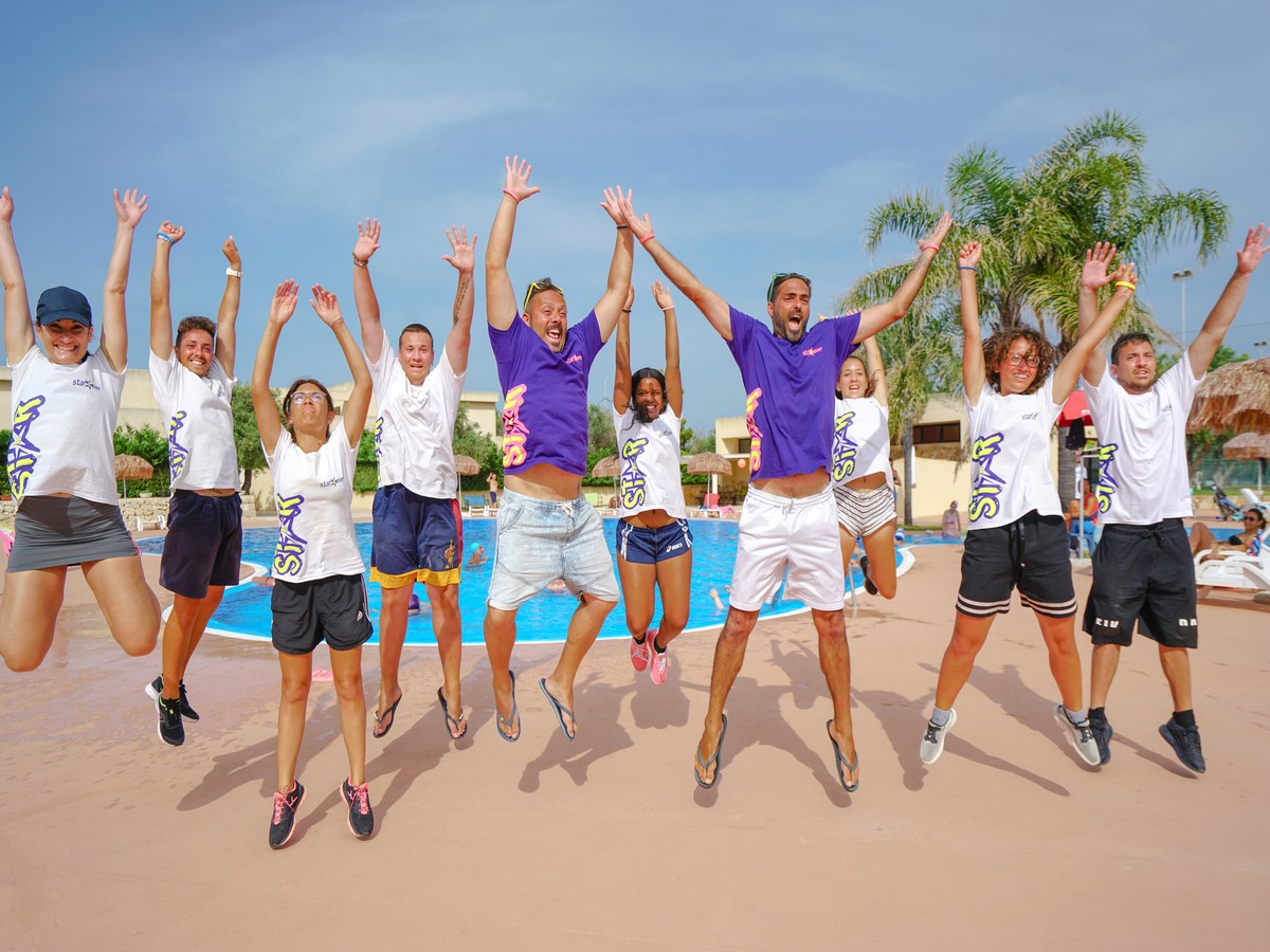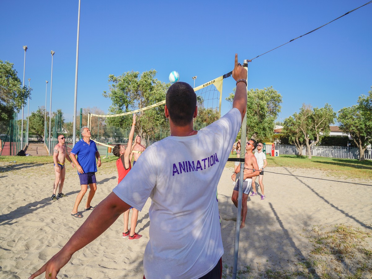 Animazione diurna in spiaggia con giochi, tornei, corsi collettivi di acqua gym, aerobica, la sera con spettacoli e balli presso l’anfiteatro della struttura.